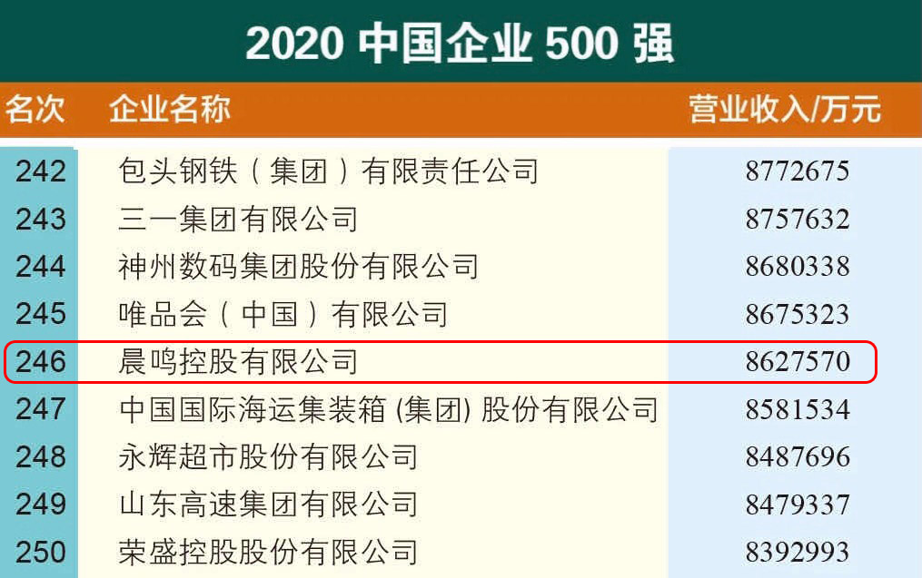 9月27-28日,由中國(guó)企業(yè)聯(lián)合會(huì)、中國(guó)企業(yè)家協(xié)會(huì)主辦的第19屆“2020中國(guó)500強(qiáng)企業(yè)高峰論壇”在河南鄭州召開(kāi),備受矚目的“2020中國(guó)企業(yè)500強(qiáng)”榜單正式發(fā)布,晨鳴控股排名第246位,位居行業(yè)榜首。在同期發(fā)布的“2020中國(guó)制造業(yè)企業(yè)500強(qiáng)”榜單中,晨鳴控股位列107位。