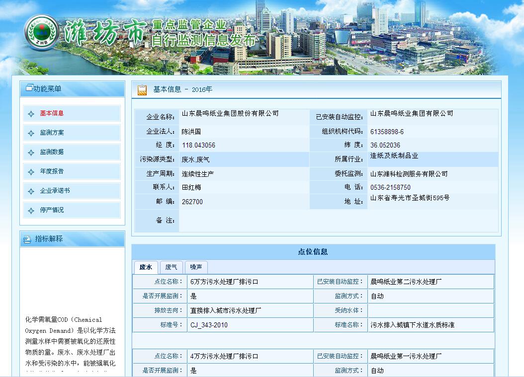 山東晨鳴紙業(yè)集團(tuán)廢水、廢氣自測(cè)公示161019